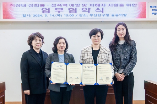 부산 부산진구는 지난 14일 (사)부산여성의전화 성·가정폭력상담소와 직장 내 성희롱·성폭력 외부 고충상담창구 설치 및 피해자 지원 강화를 위한 업무협약을 체결했다.