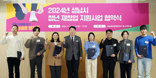 시는 이날 오후 2 시 성남글로벌융합센터 ( 수정구 달래내로 46) 1 층 다목적홀에서 사업 참여자 등이 참석한 가운데 ‘ 청년 재창업 지원사업 협약식 ’ 을 했다 .