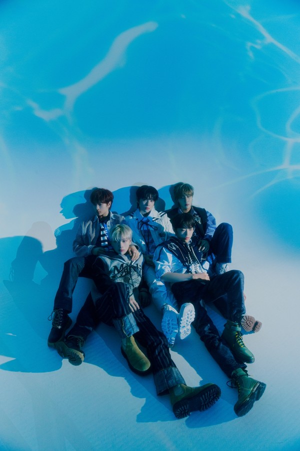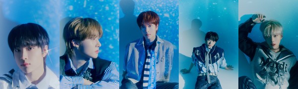차가움과 따뜻함이 함께 느껴지는 블루 컬러와 다양한 각도로 반사되는 빛 또한 멤버들의 깊이 있는 눈빛과 세밀한 표정 연출과 어우러져 오묘한 분위기를 더해 호기심을 자극한다.