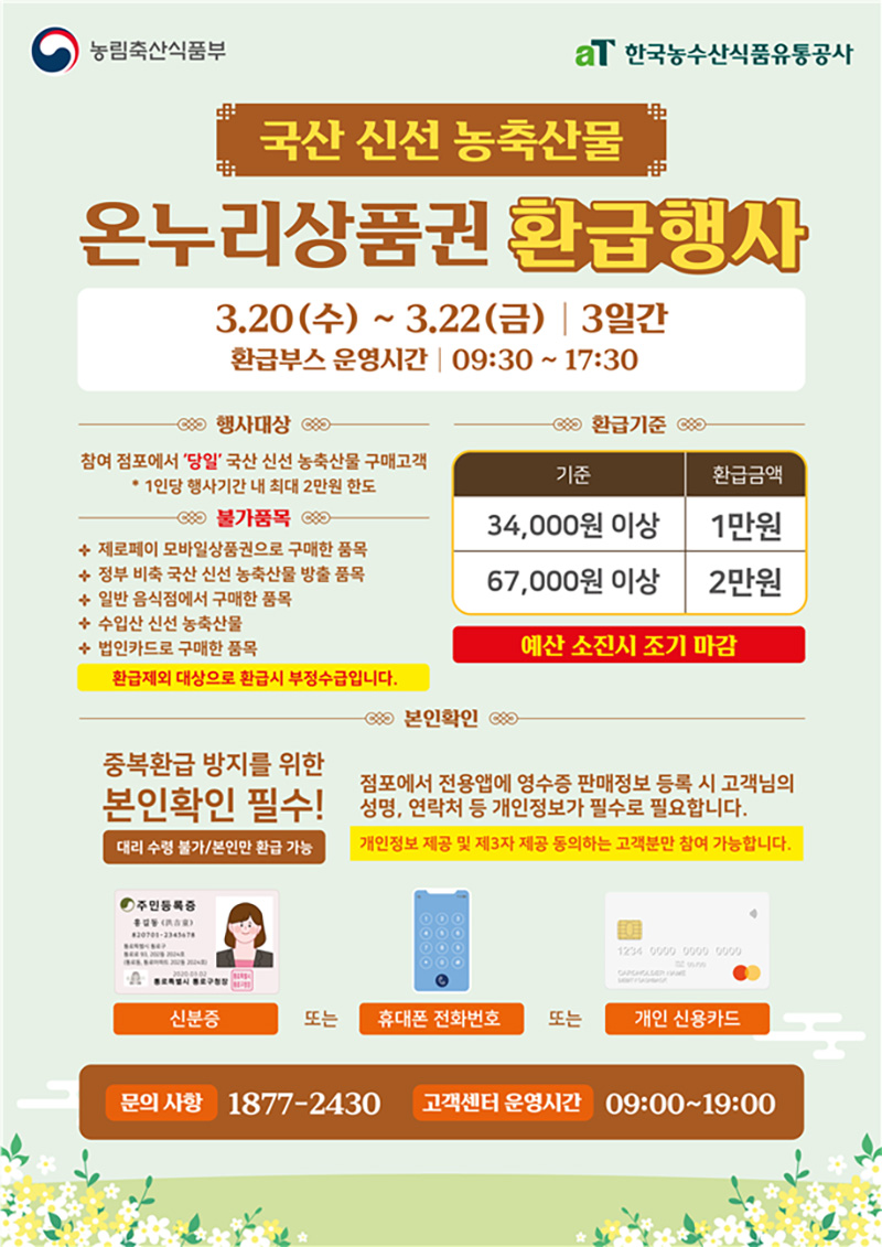 농식품부, 20일부터 22일까지 진행…1인당 최대 2만 원 한도로 환급