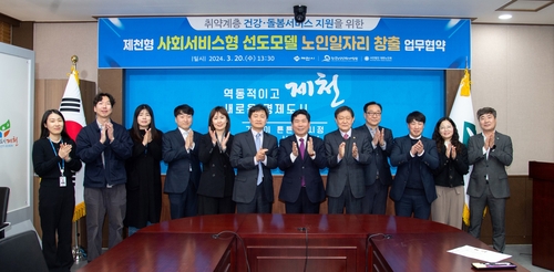 제천시는 20일 제천시청 의림지실에서 제천형 사회서비스형 노인일자리 창출 협약식을 개최하였다. 이날 협약식은 제천시와 한국노인인력개발원 및 대한노인회 제천시지회 등 3개 기관이 참석하였다.