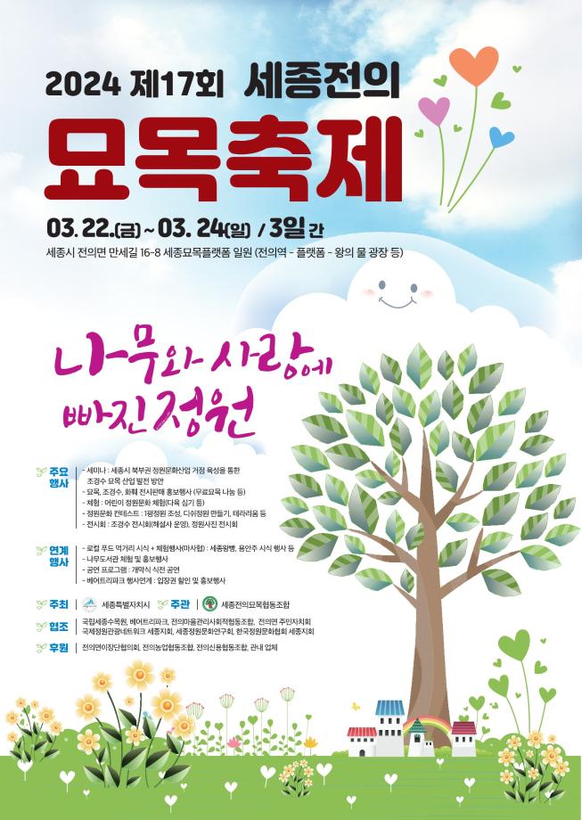 제17회 세종 전의 조경수 묘목축제가 오는 22일부터 24일까지 3일간 전의면 만세길 16-8 세종묘목플랫폼 일원에서 성대하게 펼쳐진다.