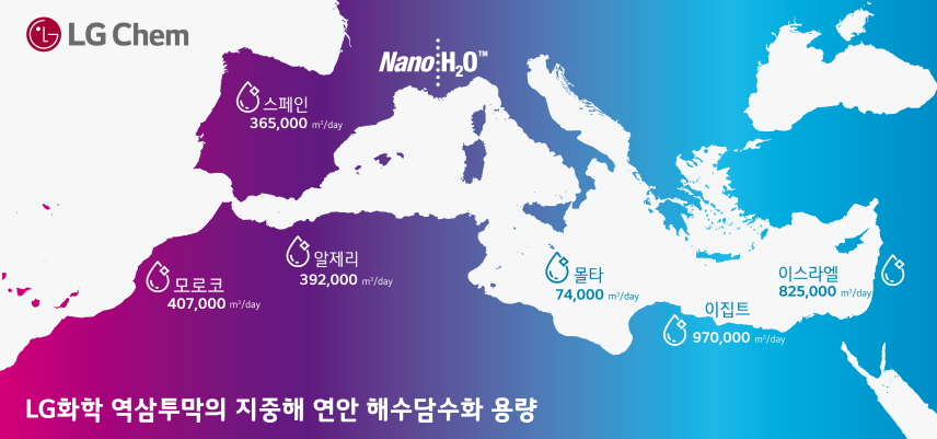 기존에 OCP가 운영하는 담수화 시설 일부에 LG화학의 역삼투막이 도입된 바 있지만 대규모 공급 계약은 이번이 처음이다. 덥고 건조한 기후로 담수가 부족한 조르프 라스파 산업단지는 해수담수화 프로젝트(Jorf Wave 2)를 통해 비료 생산에 필요한 산업용수와 인근 사피(Safi), 엘자디다(El Jadida) 지역 주민 150만명이 마실 식수를 조달할 계획이다.