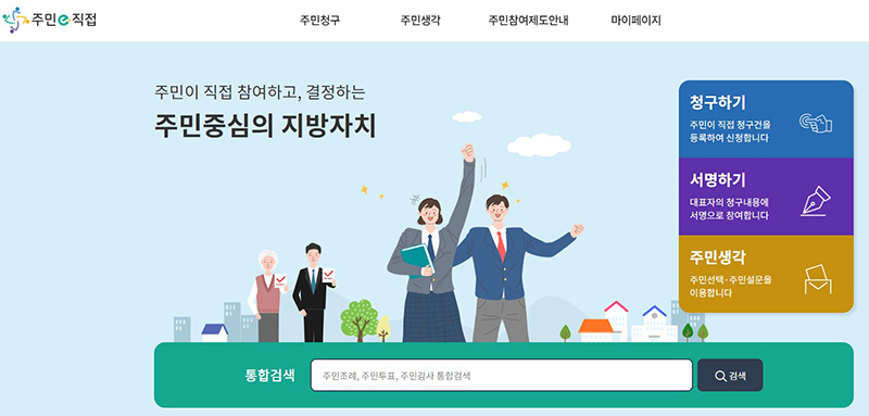 2022년부터 운영 중인 ‘주민e직접’ 시스템에서 지난 2월 말부터 주민이 직접 묻고 답하는 의견수렴 서비스 ‘주민생각’을 개시해 주민투표와 감사 청구 등이 가능해진 것이다.
