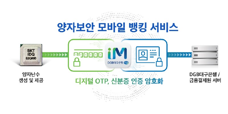 SK텔레콤이 DGB대구은행과 손잡고 내달 중순 업계 최초로 5G 양자보안 기술을 적용한 모바일 뱅킹 서비스 앱(IM뱅크)을 선보인다. 양사는 세계 최초로 5G 스마트폰에서 양자보안 기반 금융 서비스를 구현한다는 목표로 공동 개발을 완료했다.