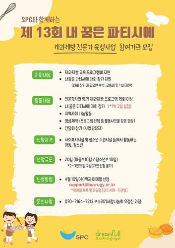 우선, '제과제빵 전문가 육성사업'은 SPC가 주최하는 청소년 제과제빵 경연대회인 '내 꿈은 파티시에' 참여를 지원하고 전문강사가 지도하는 제과제빵 교육 프로그램을 제공한다. 사회복지시설, 청소년 수련시설 등의 참여기관을 통해 총 20팀(아동부 10팀, 청소년부 10팀)을 모집하며, 각 팀에 220만원 상당의 교육비 및 진로탐색의 기회를 제공할 예정이다.