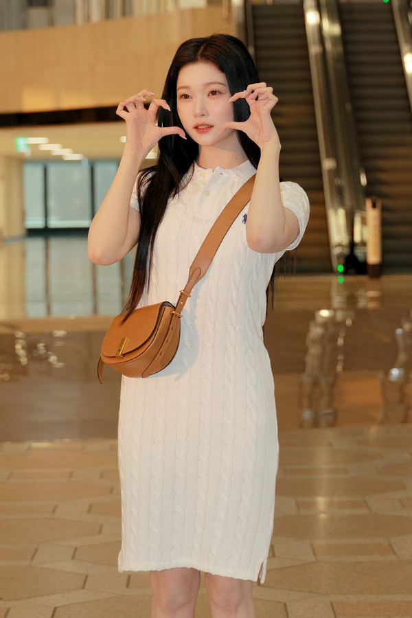 출국에 앞서 츠키는 화이트 색상의 폴로 랄프 로렌의 아이코닉한 폴로 셔츠에서 영감을 받은 슬림핏 케이블 니트 코튼 폴로 드레스와 클래식한 캔버스 캡 토 스니커즈를 착용해 청아하면서도 캐주얼한 무드를 선보였으며, 시그니처 포니가 돋보이는 폴로 ID 컬렉션의 카프스킨 미니 새들백을 들어 산뜻한 공항패션을 완성했다.