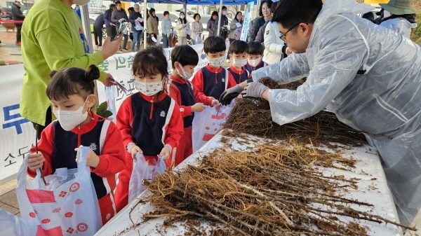 행사에서는 계수나무, 산수유, 미선나무와 같은 아름다운 경관수를 비롯하여, 헛개나무, 마가목, 오갈피나무와 같은 약용수 등 13개 수종 5,000 그루를 나눠주었다.