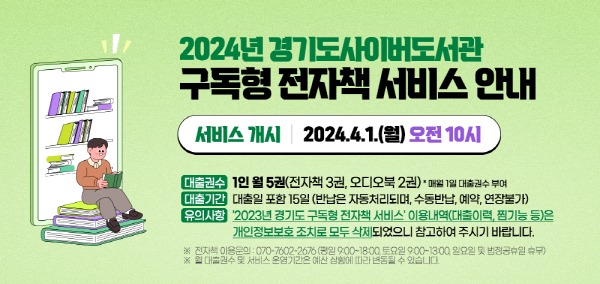 경기도가 인기도서나 신간 도서를 빨리 만날 수 있는 ‘2024년 구독형 전자책 서비스’를 1일 시작한다.