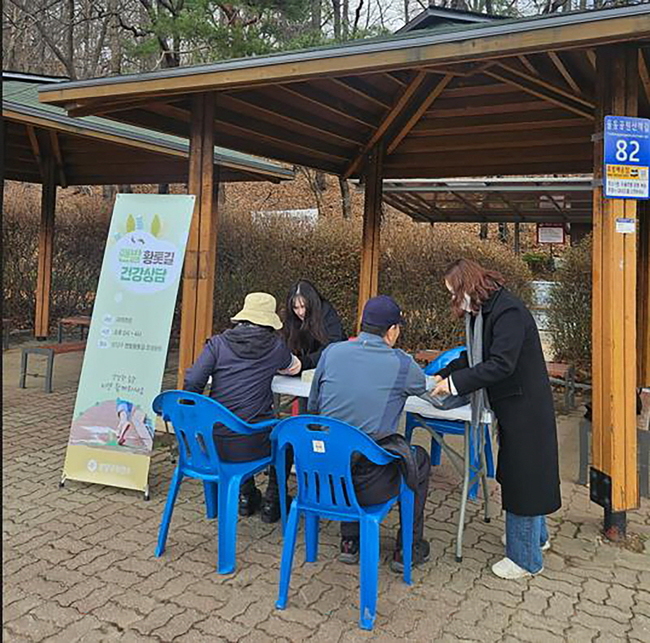 맨발 황톳길을 이용하는 시민들에게 만성질환 예방 · 관리에 대한 전문적인 지식과 정보를 제공하고 , 건강관리에 도움을 주려는 취지다 .