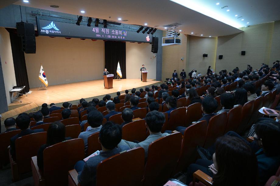 김하균 행정부시장은 1일 열린 4월 직원소통의 날에서 ‘좋은 상태로 만들려고 보살피고 꾸려가다’는 사전적 의미의 ‘가꾸다’라는 단어를 통해 공직자로서 세종시의 미래를 함께 가꿔나갈 것을 주문했다.