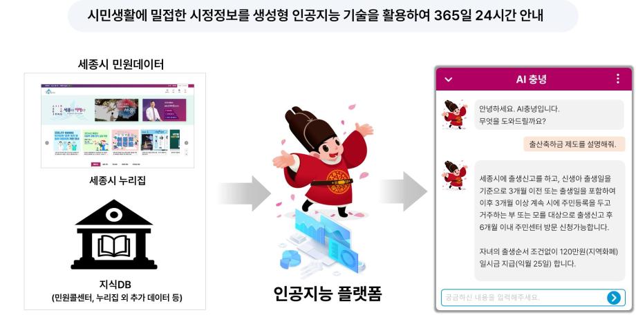 아울러, 민원 상담원 수준의 답변이 가능한 챗봇서비스인 가칭 ‘AI충녕’을 개발해 시민들께 제공할 계획이다.