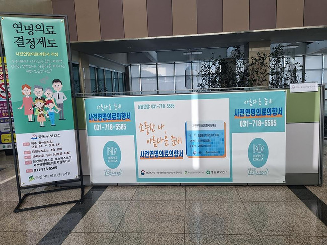 성남시는 수정 ‧ 중원 ‧ 분당구 보건소에 주 2 회 설치 · 운영하던 사전연명의료의향서 출장 상담소를 주 5 회로 확대한다고 2 일 밝혔다 .
