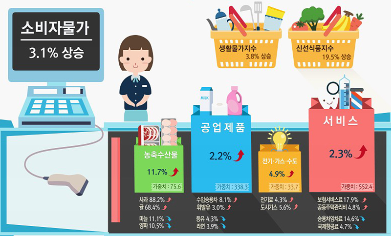 이날 발표에 따르면 생활물가지수는 전월대비 0.3%, 전년동월대비 3.8% 각각 상승했다.