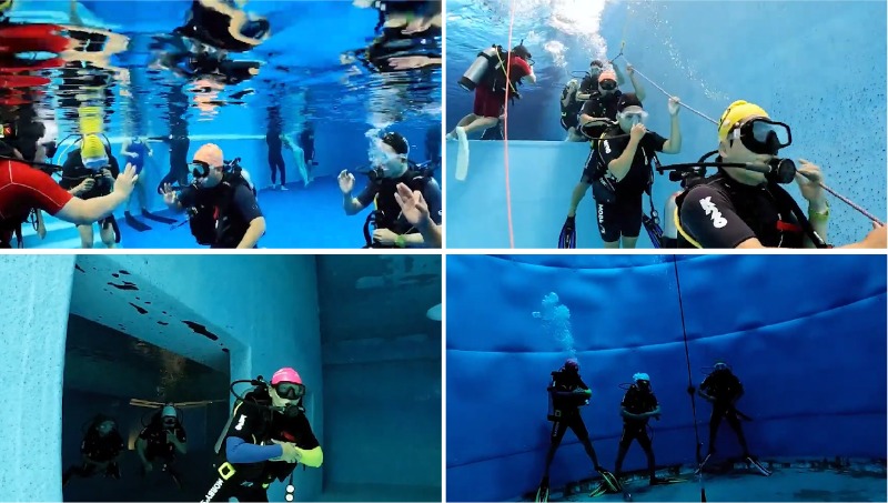 오늘은 스쿠버다이빙 교육하기 위해 다이빙 풀을 찾았습니다.