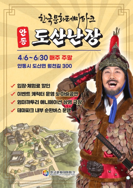 [안동=뉴스채널A] 안동시 도산면에 위치한 한국문화테마파크(이하 테마파크)는 오는 6일부터 6월 30일까지 매주 주말 이벤트 행사를 개최해, 테마파크를 찾는 관광객에게 잊지 못할 기억을 선사할 계획이라고 밝혔다.