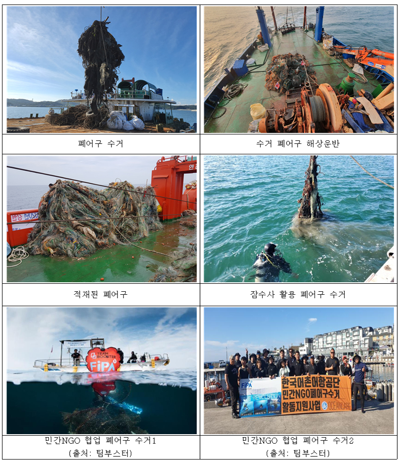 수거 주체는 한국어촌어항공단으로, 수거된 폐어구는 육상으로 운반해 폐기물관리법에 따라 적법한 절차로 처리된다.