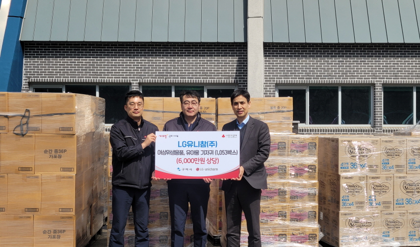 LG생활건강과 일본 유니참 그룹의 합작회사인 엘지유니참㈜은 경북 구미시청과 함께 진행하는 ‘쉐어 패드(Share Pad)’ 캠페인으로 쏘피(SOFY) 생리대 25만 장과 마미포코 기저귀 3만 장을 지역사회에 기부했다. 지난달 말 구미시민운동장에서 진행된 나눔 행사에는 엘지유니참 임직원이 직접 참석해 여성•청소년 쉼터, 아동복지센터, 미혼모 시설에 기부 용품을 전달했다.