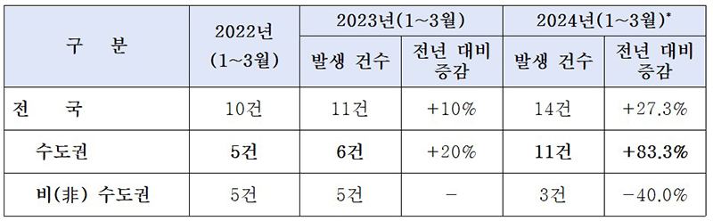 최근 영·유아 시설 종사자에서 결핵환자가 증가하는 추세로, 수도권은 지난해 같은 기간 대비 5건이 증가한 11건이 발생했다.