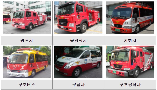구급차, 펌프차, 화학차, 구조‧지휘버스, 탱크차 등 다양한 종류의 중고 소방차 지원