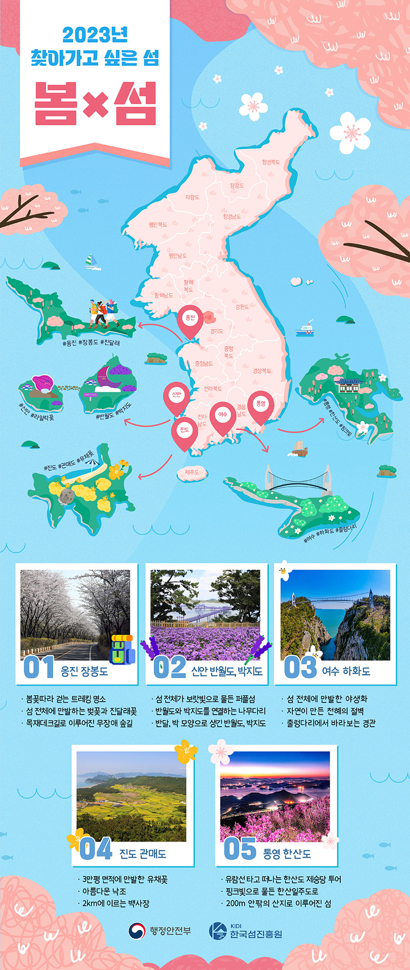 2023 찾아가고 싶은 섬 봄x섬 5 : 웅진 장봉도, 신안 반월도&박지도, 여수 하화도, 진도 관매도, 통영 한산도