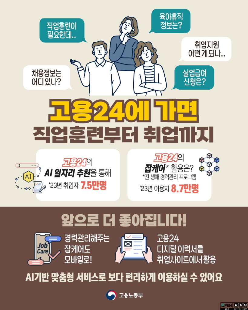 그간 정부는 AI 일자리 매칭, 맞춤형 진로탐색·설계 지원 잡케어 서비스, 디지털 고용서비스 통합플랫폼 「고용24」에 이르기까지 인공지능·빅데이터 등 신기술을 활용한 디지털 고용서비스 고도화를 추진해 왔다.