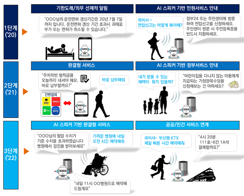 이 사업은 2022년까지 3단계에 걸쳐 추진되는데 2021년, 2022년에 각각 12종의 챗봇 서비스가 추가되어 2023년에는 34종의 민원상담이 하나의 대화방에서 가능해진다.