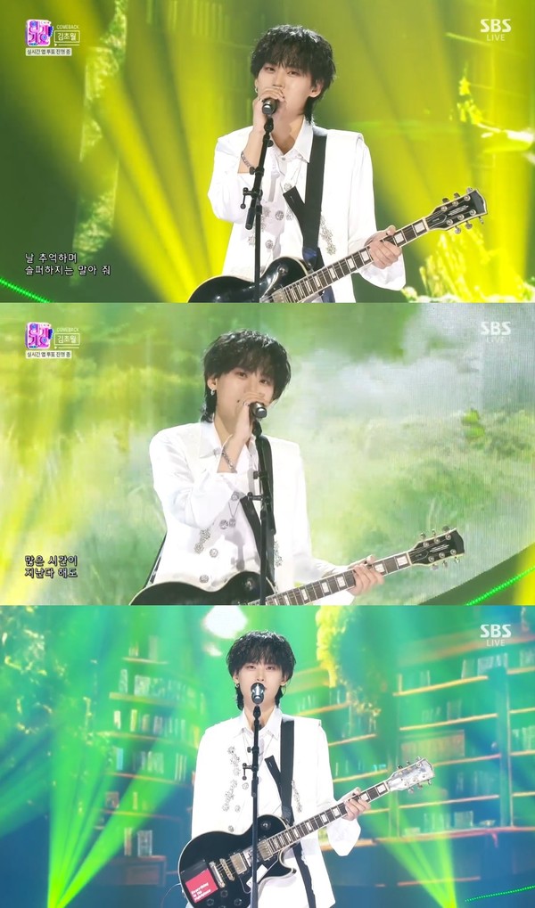 김초월은 14일 방송된 SBS ‘인기가요’에 출연해 새 싱글 ‘신기루정원’의 타이틀곡 ‘신기루정원’ 무대를 선보였다.