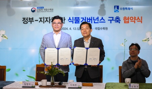 산림청 국립수목원은 수원시와 지난 12일(금) 식물유전자원의 전시·보전·교육을 위한 업무협약을 체결했다.