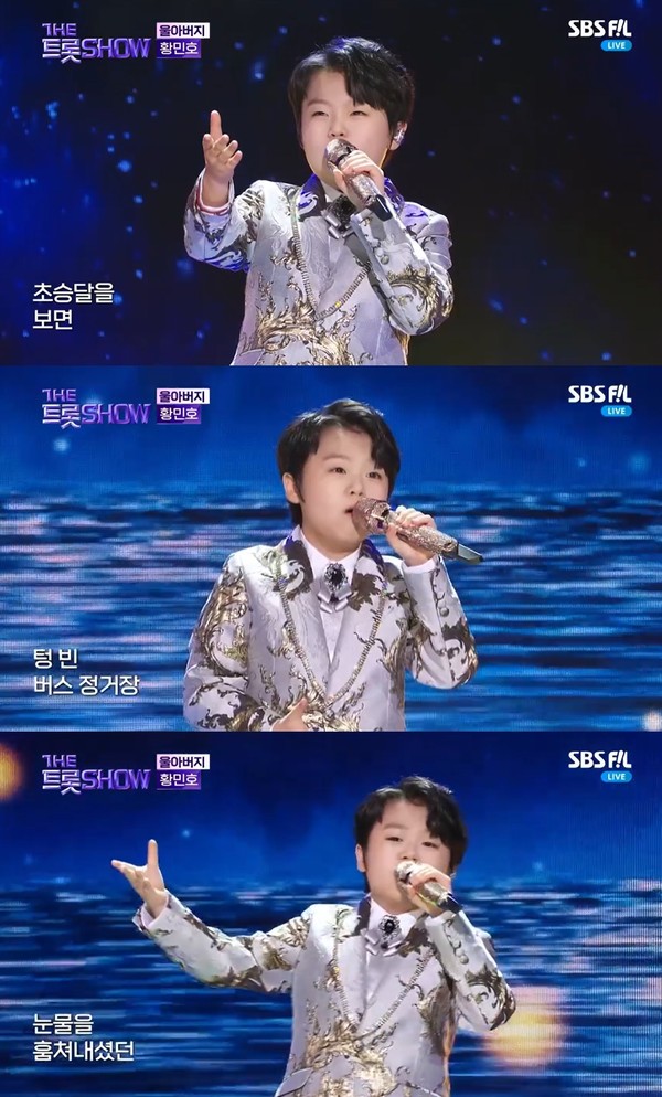 황민호는 지난 15일 방송된 SBS FiL, SBS M 음악프로그램 '더 트롯쇼'에 출연해 '울아버지' 무대를 꾸몄다.