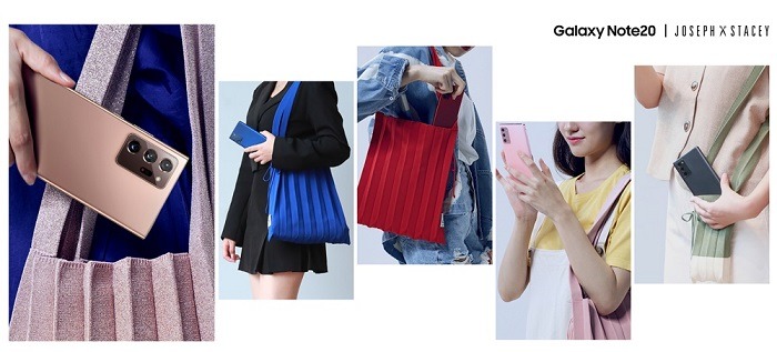 삼성전자와 조셉앤스테이시는 ‘갤럭시 노트20’를 더욱 멋지게 가지고 다닐 수 있는 전용 가방도 선보인다. 조셉앤스테이시만의 아이코닉한 디자인과 비비드한 컬러 감성의 ‘플리츠 니트백’을 전에 없던 휴대폰 전용 사이즈로 제작하고 ‘갤럭시 노트20’의 미스틱 컬러에서 영감 받은 색상을 더했다.