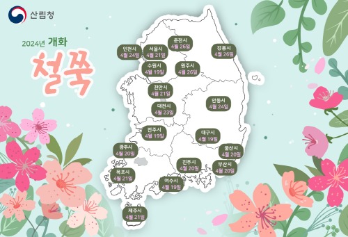 올해 개화 시기는 지난겨울(2023년 12월~2024년 2월)의 기온이 평년보다 1.9℃ 높았고(2.4℃) 강수량은 약 41mm 많았으며(약 237mm), 다가오는 4월과 5월의 기온이 평년보다 높을 것으로 전망됨에 따라, 전년보다 1~3 일가량 빠를 것으로 예측되었다.