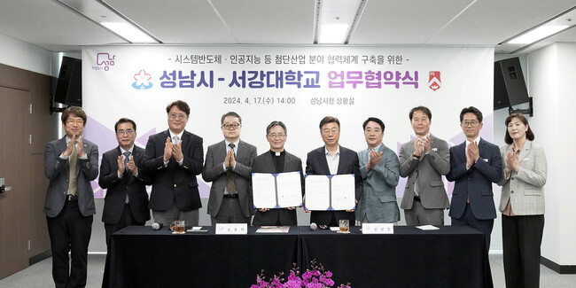 성남시가 서강대학교와 시스템반도체 · 인공지능 등 첨단산업 분야의 석 ‧ 박사급 고급 인재 양성을 위해 협력한다 .