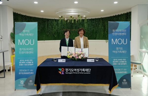 경기도여성가족재단 젠더폭력통합대응센터가 17일 경기도외국인인권지원센터와 젠더폭력방지 및 피해지원을 위한 업무협약을 체결했다.