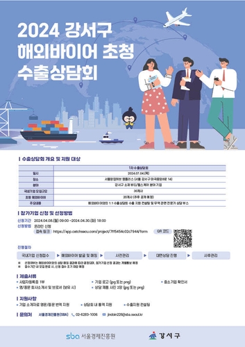 서울 강서구는 중소기업의 해외시장 판로개척을 위해 '중소기업 수출상담회'를 개최하고 참가기업을 모집한다고 밝혔다.