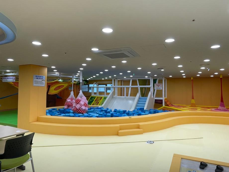 내부에는 어린이 제품안전인증을 받은 친환경 소재의 그물놀이기구와 신개념 스폰지 수영장 폼핏존, 사용자의 움직임에 반응하는 양방형 콘텐츠으로 채워진 상상꿈터(인터렉티브룸)를 갖췄다.