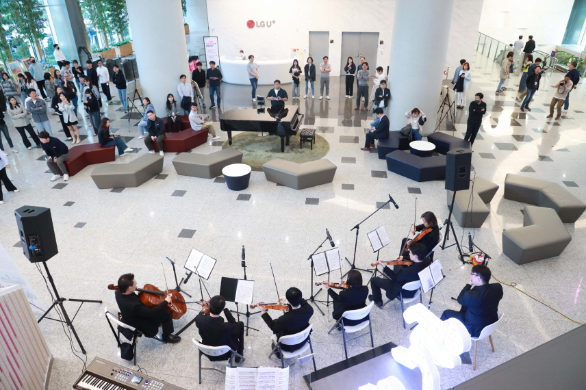 행사는 LG유플러스 용산사옥 1층에서 전시·공연과 기부 두 가지 형태로 진행됐다. 전시·공연은 4명의 화가로 구성된 ‘브릿지온 아르떼’의 작품 15여점과, 9명의 음악가 모임인 ‘브릿지온 앙상블’의 40분에 걸친 연주회로 구성됐다.