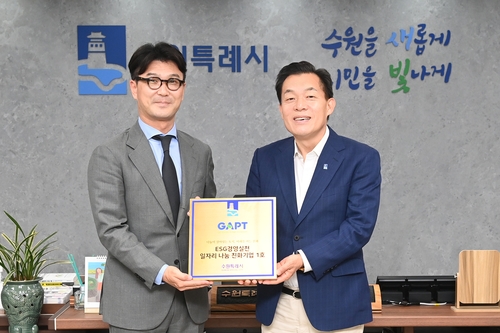 수원시는 지난 19일 수원시청에서 수원시 중소기업인 ㈜갭텍과 'ESG경영실천·일자리나눔 친화기업 1호 업무협약'을 체결했다.