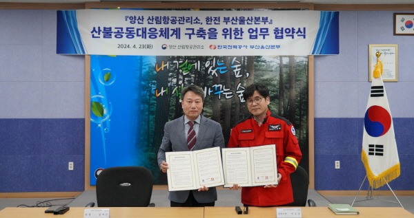 산림청 양산산림항공관리소는 23일 한국전력공사 부산울산본부와 산불 발생 시 재해로부터 신속한 대응 및 복구를 위한 산불 공동 대응 업무협약(MOU)을 체결했다고 밝혔다.