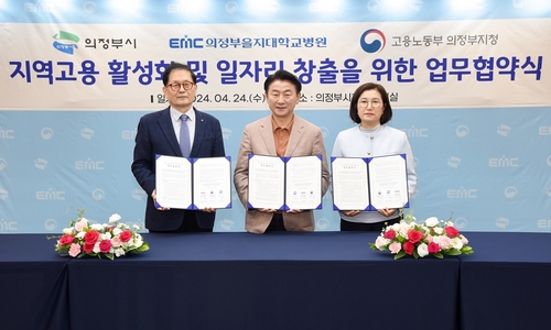 의정부시는 4월 24일 시청 중회의실에서 의정부을지대학교병원, 고용노동부 의정부지청과 '지역고용 활성화 및 일자리 창출을 위한 업무협약'을 체결했다.