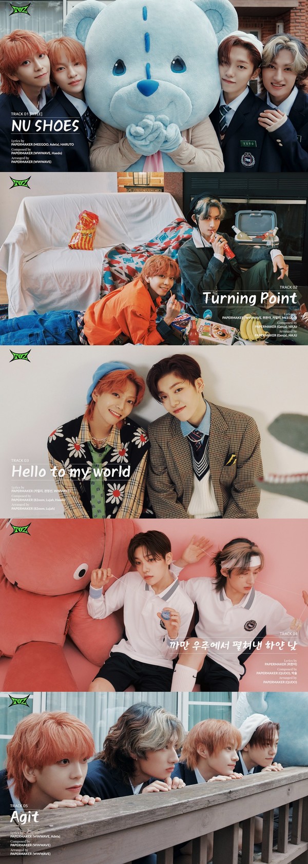 타이틀곡 'NU SHOES(뉴 슈즈)'는 밝고 경쾌한 기타 리프와 중독성 강한 멜로디가 TOZ만의 밝은 에너지를 전달했다. 더불어 멤버 하루토가 직접 작사에 참여해 팬들의 이목을 집중시켰다.