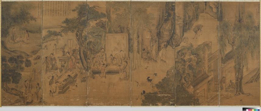국립중앙박물관이 소장한 「김홍도 필 서원아집도 병풍」은 1778년(조선 정조 2) 김홍도가 그린 작품으로, 북송(北宋) 영종(英宗)의 부마 왕선(王詵)이 수도 개봉(開封)에 있던 자신의 집 서원(西園)에서 1087년경에 소식(蘇軾)과 이공린(李公麟), 미불(米芾) 등 여러 문인들과 함께 다양한 문예활동을 즐겼던 ‘서원아집(西園雅集)’을 주제로 한 것이다.