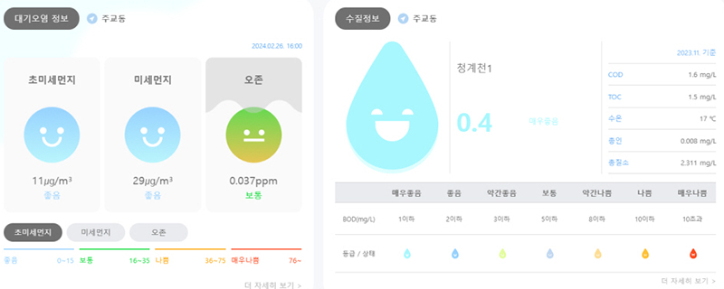 우리동네의 초미세먼지 등 대기질, 하천의 수질·수위, 날씨를 한 곳에서 확인 가능해졌다.