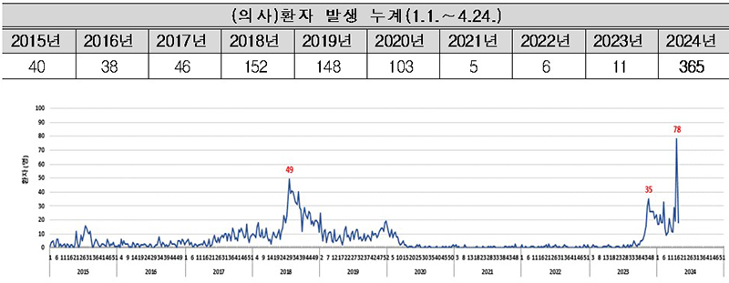 스페인의 경우 2월 25일 기준으로 5242건으로 전년도 대비 약 2.7배였고, 네덜란드는 3월 10일 기준 1749명으로 전년도 발생의 65% 이상의 환자가 3월까지 발생한 것으로 나타났다.