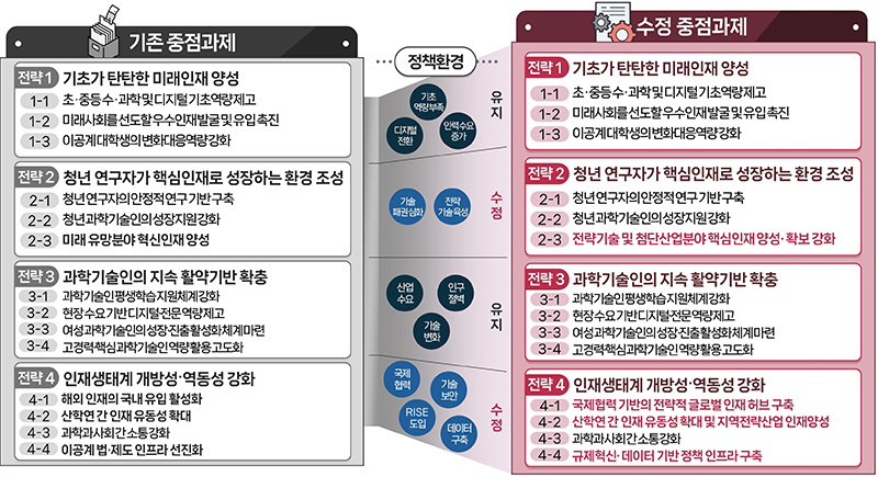 한편 인재생태계의 개방성과 역동성을 강화하고자 국가전략기술 분야 우수연구자 전략적 유치 강화, 사이언스 카드소지자 우대제도를 개선한다.