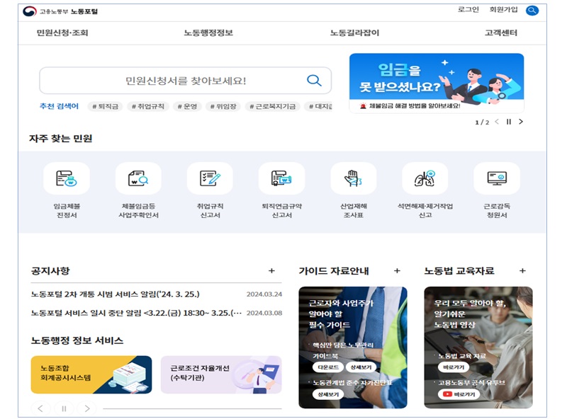 이번 노동포털 누리집 기능 확대로 노동 분야 대국민 서비스를 제공하는 온라인 전용 창구를 완성했다.
