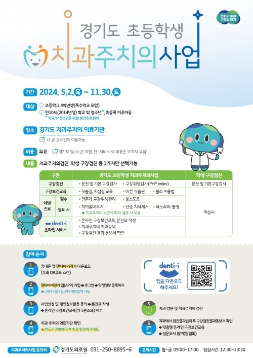 경기도가 5월 2일부터 초등학교 4학년을 대상으로 예방 중심의 구강 관리 서비스를 제공하는 ‘2024년 초등학생 치과주치의사업’을 시행한다.