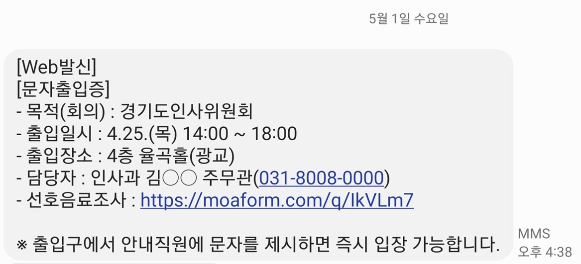 경기도가 각종 위원회나 회의, 도 개최 행사 참석을 위해 수원에 위치한 경기도청사를 방문하는 참석자들의 출입등록 불편을 해소하기 위해 이달부터 문자 출입증과 QR코드 인증시스템을 도입한다.