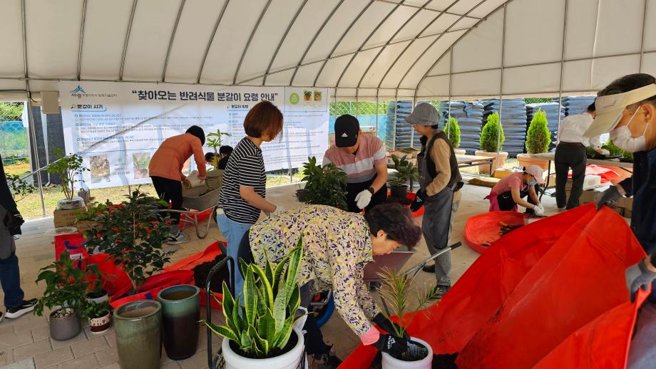 이번 교육은 가정 내에서 하기 어려운 반려식물의 화분갈이를 위한 현장실습 공간을 제공해 식물을 키우는 어려움을 덜어주고 안정적인 실내식물 관리 요령을 교육하기 위해 마련됐다.