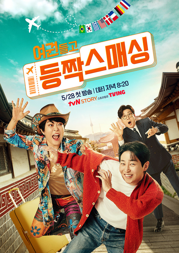tvN STORY 신규 예능 ‘여권들고 등짝스매싱’이 오는 5월 28일(화) 저녁 8시 20분 첫 방송을 확정하고 김성주, 조혜련, 딘딘 3MC의 발랄함이 담긴 포스터를 공개했다. 동시에 아기자기한 캐릭터가 담긴 1차 티저 영상을 공개해 눈길을 끈다.
